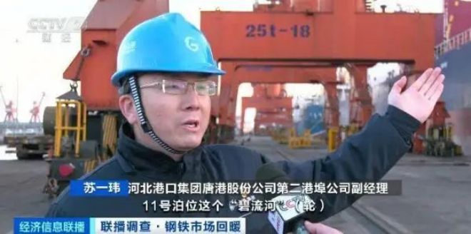 河北港口集團唐港股份公司第二港埠公司副經理 蘇一瑋:11號泊位“碧流河”輪,裝載5.5萬噸外貿的中板、卷板和冷板到東南亞國家。今年前10個月,京唐港區完成外貿鋼材的運量888.83萬噸,同比增長121.2%,創開港以來的曆史新高。