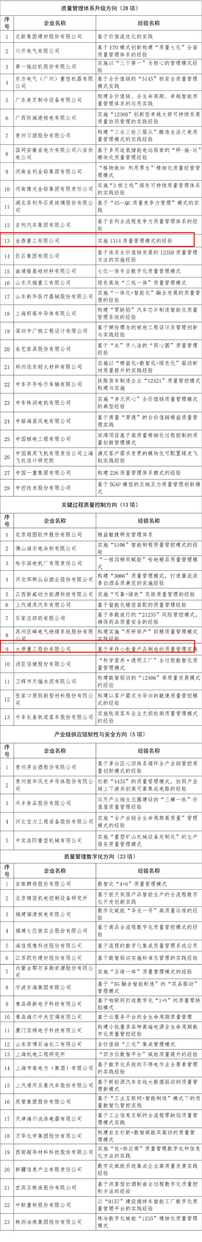 從《通知》中獲悉,經企業自主申報、各推薦單位推薦、資格審查、評審委員會資料評審、答辯評審和網上公示,最終認定28項質量管理體係升級、13項關鍵過程質量控製、5項產業鏈供應鏈韌性與安全和23項質量管理數字化等領域的典型經驗為2023年全國質量標杆。其中,金鼎重工有限公司、太原重工股份有限公司上榜。
