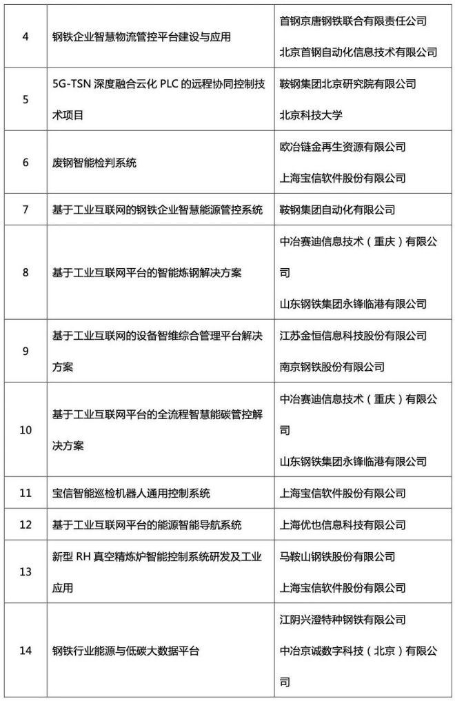 中國電子標準化技術研究院物聯網中心副主任焦國濤,國家智能製造專家委員會委員、寶信軟件技術專家叢力群,國家智能製造專家委員會委員蔣白樺,中冶賽迪信息技術(重慶)有限公司黨委書記、董(dong)事(shi)長(chang)李(li)誌(zhi),河(he)鋼(gang)數(shu)字(zi)副(fu)總(zong)經(jing)理(li)潘(pan)鵬(peng),南(nan)京(jing)鋼(gang)鐵(tie)總(zong)經(jing)理(li)助(zhu)理(li)孫(sun)茂(mao)傑(jie),中(zhong)國(guo)鋼(gang)研(yan)副(fu)總(zong)工(gong)孫(sun)彥(yan)廣(guang),鞍(an)鋼(gang)鋼(gang)研(yan)院(yuan)院(yuan)長(chang)王(wang)軍(jun)生(sheng),中(zhong)冶(ye)京(jing)誠(cheng)副(fu)總(zong)工(gong)葛(ge)秀(xiu)欣(xin),首(shou)鋼(gang)技(ji)研(yan)院(yuan)副(fu)總(zong)工(gong)王(wang)鳳(feng)琴(qin),東(dong)大(da)軋(zha)製(zhi)技(ji)術(shu)及(ji)連(lian)軋(zha)自(zi)動(dong)化(hua)國(guo)家(jia)重(zhong)點(dian)實(shi)驗(yan)室(shi)副(fu)主(zhu)任(ren)張(zhang)殿(dian)華(hua),北(bei)科(ke)大(da)鋼(gang)鐵(tie)共(gong)性(xing)技(ji)術(shu)協(xie)同(tong)創(chuang)新(xin)中(zhong)心(xin)首(shou)席(xi)呂(lv)誌(zhi)民(min),河(he)北(bei)工(gong)業(ye)職(zhi)業(ye)技(ji)術(shu)大(da)學(xue)智(zhi)能(neng)製(zhi)造(zao)學(xue)院(yuan)院(yuan)長(chang)李(li)建(jian)朝(chao)等(deng)專(zhuan)家(jia)參(can)加(jia)評(ping)選(xuan)。鋼(gang)協(xie)科(ke)技(ji)環(huan)保(bao)部(bu)處(chu)長(chang)兼(jian)智(zhi)能(neng)製(zhi)造(zao)聯(lian)盟(meng)執(zhi)行(xing)秘(mi)書(shu)長(chang)符(fu)鑫(xin)峰(feng)主(zhu)持(chi)。