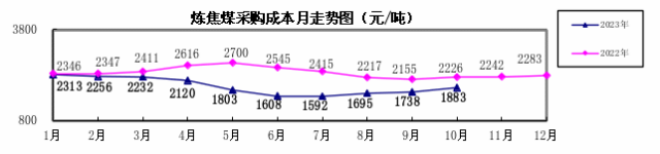 2023年10月“對標挖潛”企業煤焦類品種采購成本升幅較大