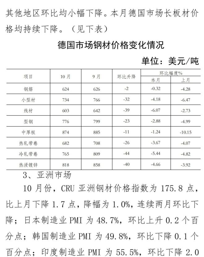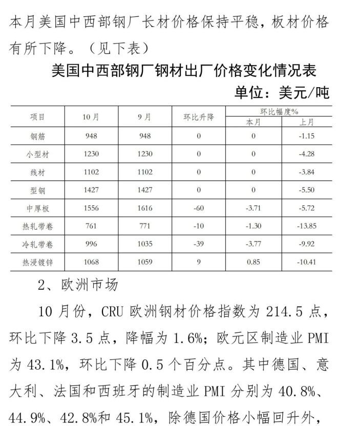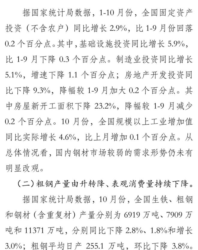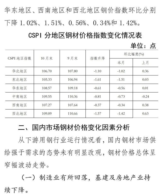 10月份國內市場鋼材價格小幅下降 11月以來止跌回升
