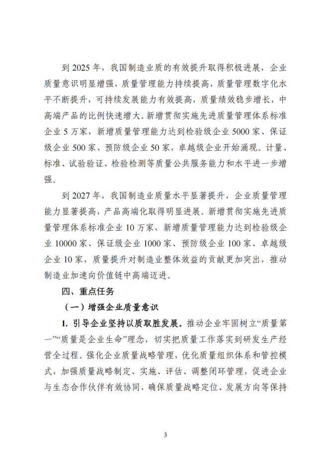 工信部等三部門聯合發布《製造業卓越質量工程實施意見》