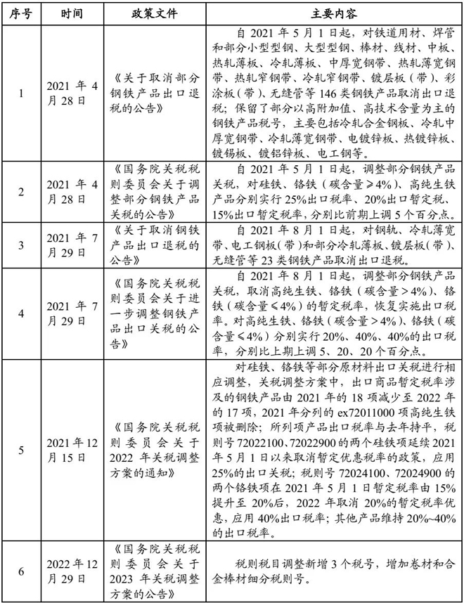 (二)2021年-2022年我國鋼鐵產品出口政策回顧
