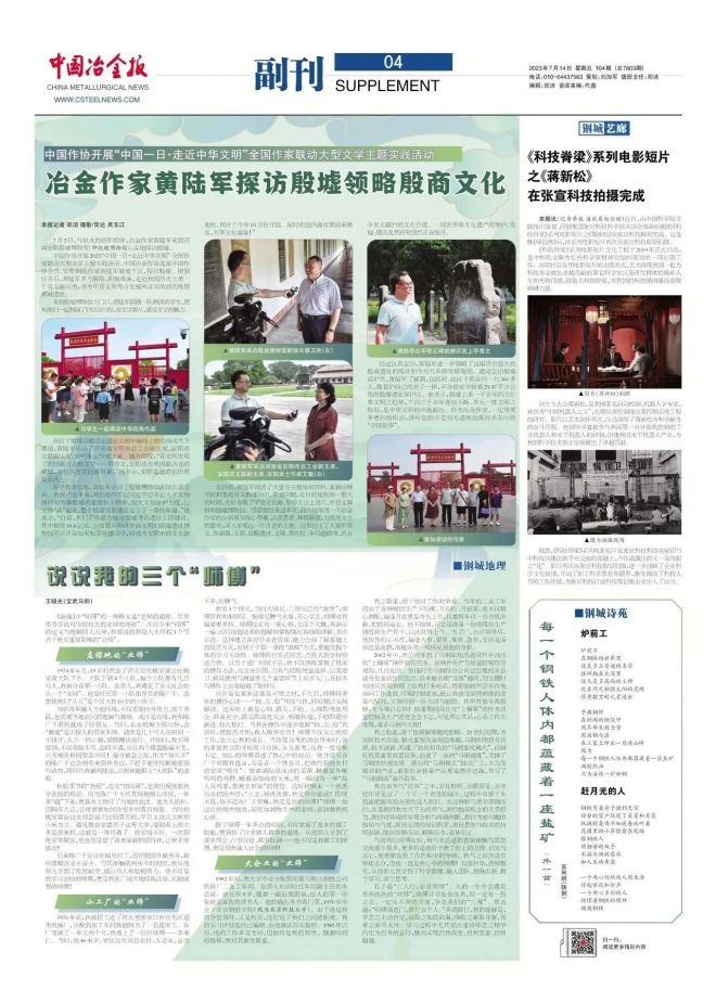 同時,白楊積極參與“深入生活、紮根人民”主題實踐。受中國冶金作協選派,白楊參加中國作協2023“中國一日·走近中華文明”全(quan)國(guo)作(zuo)家(jia)聯(lian)動(dong)大(da)型(xing)文(wen)學(xue)主(zhu)題(ti)實(shi)踐(jian)活(huo)動(dong),就(jiu)地(di)下(xia)沉(chen),探(tan)訪(fang)殷(yin)墟(xu),走(zou)近(jin)我(wo)國(guo)曆(li)史(shi)上(shang)第(di)一(yi)個(ge)有(you)文(wen)獻(xian)可(ke)考(kao),並(bing)為(wei)甲(jia)骨(gu)文(wen)和(he)考(kao)古(gu)發(fa)掘(jue)所(suo)證(zheng)實(shi)的(de)商(shang)代(dai)晚(wan)期(qi)都(dou)城(cheng)遺(yi)址(zhi)。白(bai)楊(yang)在(zai)殷(yin)墟(xu)進(jin)行(xing)現(xian)場(chang)采(cai)訪(fang),用(yong)一(yi)個(ge)冶(ye)金(jin)作(zuo)家(jia)的(de)全(quan)新(xin)視(shi)角(jiao),深(shen)入(ru)審(shen)視(shi)這(zhe)一(yi)片(pian)古(gu)老(lao)的(de)土(tu)地(di)。采(cai)訪(fang)後(hou),他(ta)撰(zhuan)寫(xie)的(de)文(wen)化(hua)散(san)文(wen)《殷墟上的樂章》在《中國冶金報》副刊全文發表,並被《安鋼報》轉載,受到中國作協好評。2023年9月16日,30多位文友對該作品進行研討。白楊現場介紹了創作經過,並講述了散文寫作的章法和技巧。