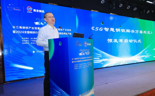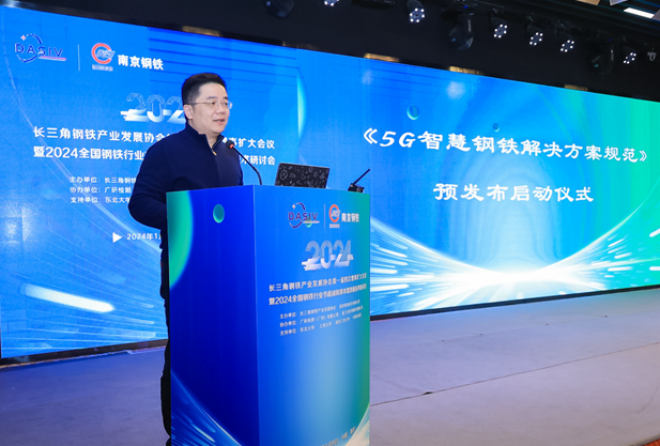 2024年1月9日上午,在長三角鋼鐵產業發展協會一屆四次理事擴大會議上,協會團體標準《5G智慧鋼鐵解決方案規範》在南京舉行了預發布儀式。