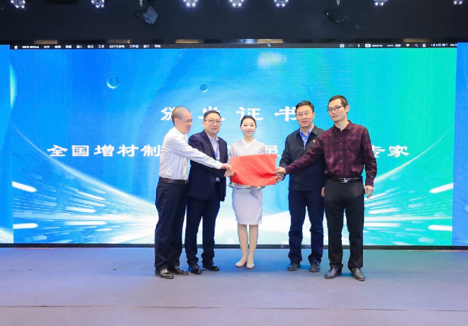 南鋼常務副總裁徐曉春、協會包忠峰秘書長、增材製造專家委員會嶽健廣秘書長、增材製造專家委員會張維官副秘書長共同為全國增材製造專家委員會秘書處揭牌。
