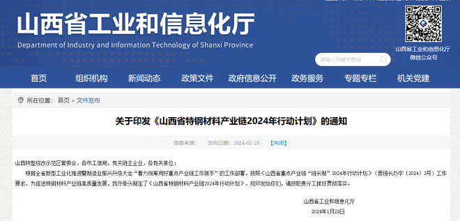 營業收入今年力爭突破1400億元!《山西省特鋼材料產業鏈2024年行動計劃》發布
