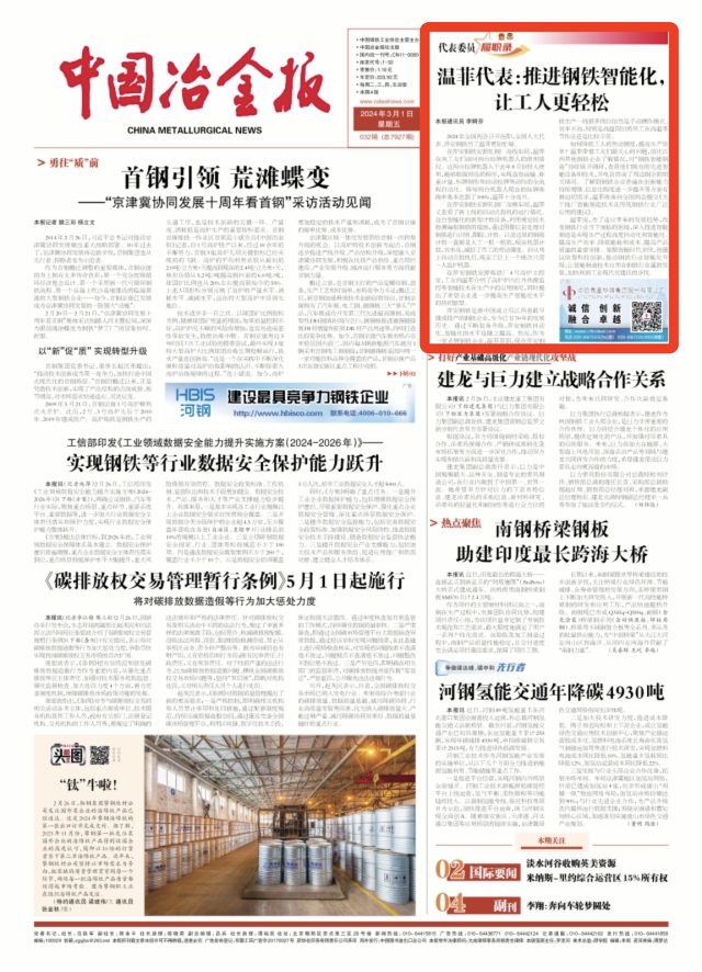 【代表委員履職錄】溫菲代表:推進鋼鐵智能化,讓工人更輕鬆