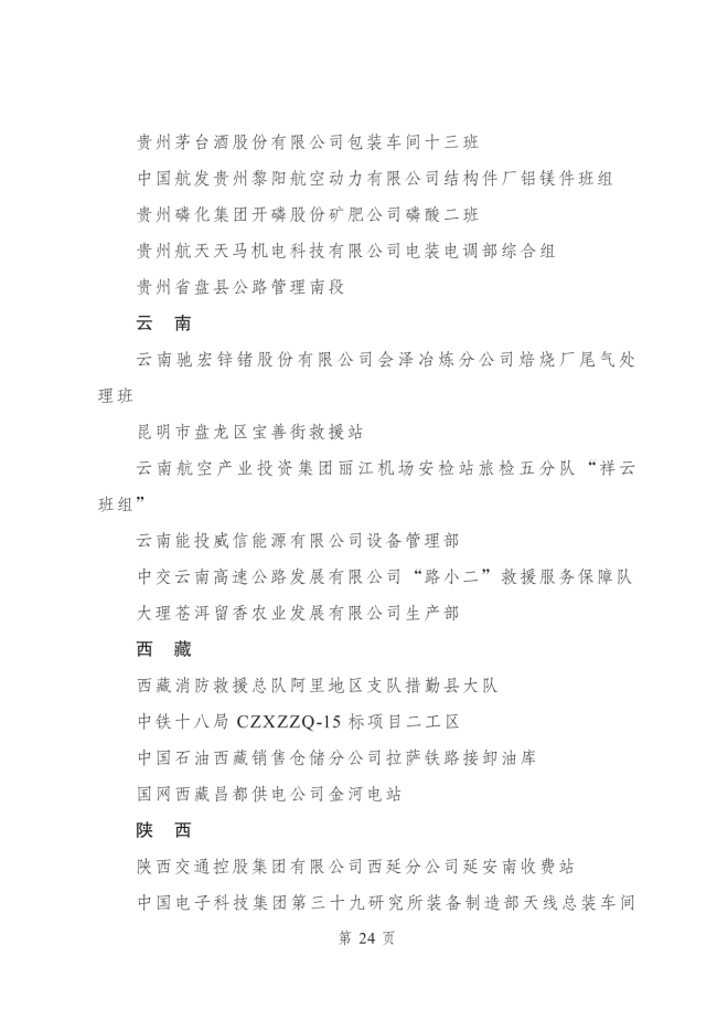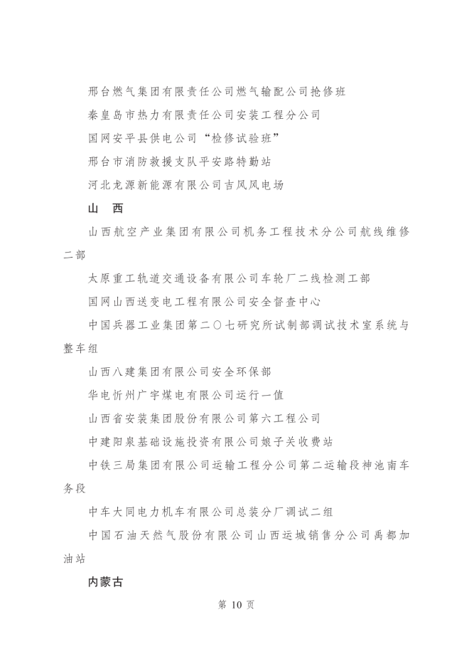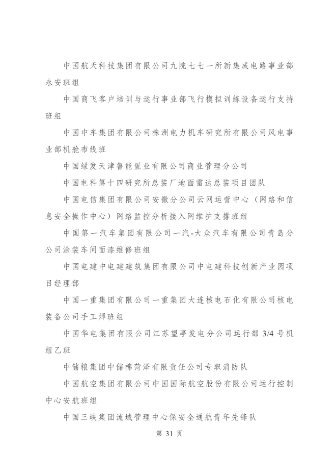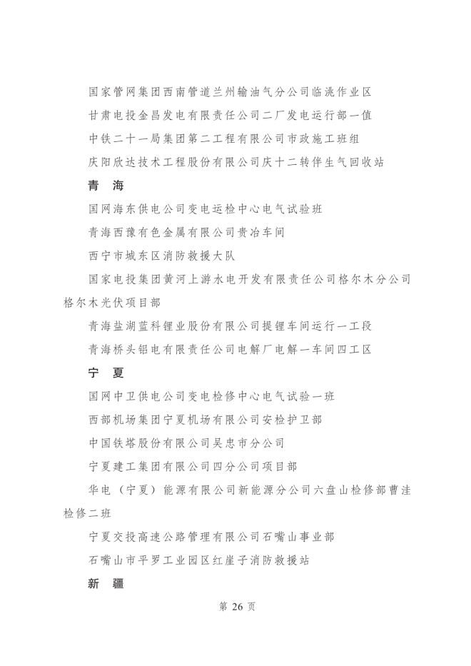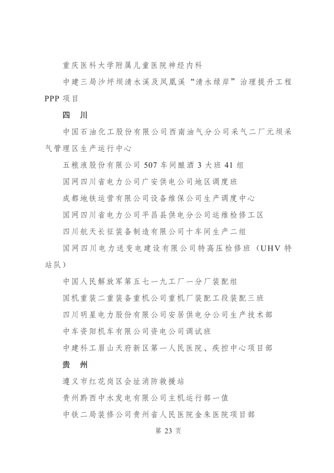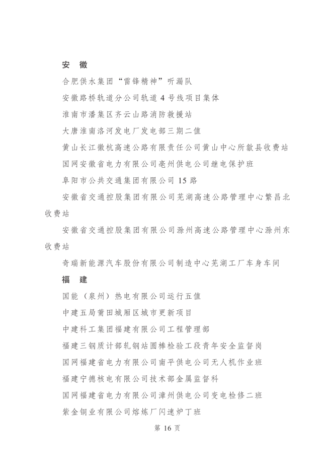 2023年度全國青年安全生產示範崗集體名單