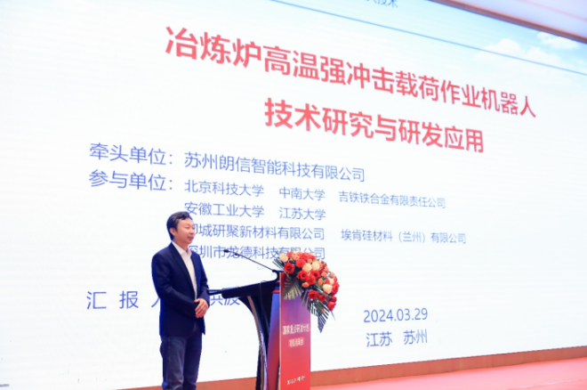 3月29日,由蘇州朗信智能科技有限公司(以下簡稱朗信科技)作為牽頭單位的國家重點研發計劃智能機器人重點專項——“冶煉爐高溫強衝擊載荷作業機器人技術研究與研發應用”項目啟動會在蘇州召開。這是工信部、地方政府、優秀企業、重點高校、行業協會攜手落實中央部署、大力培育和發展新質生產力的重要行動。