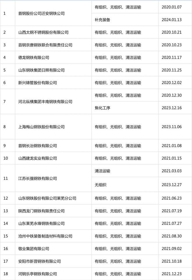 自2020年8月起,中國鋼鐵工業協會開展了鋼鐵企業超低排放改造和評估監測進展情況公示工作。截至目前,已有133家企業在鋼協網站進行公示。已公示企業名單彙總及各企業公示內容整理如下: