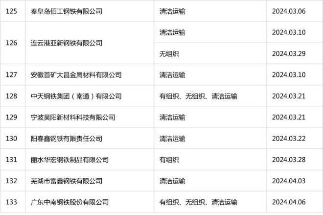 已公示超低排放改造鋼鐵企業增至133家