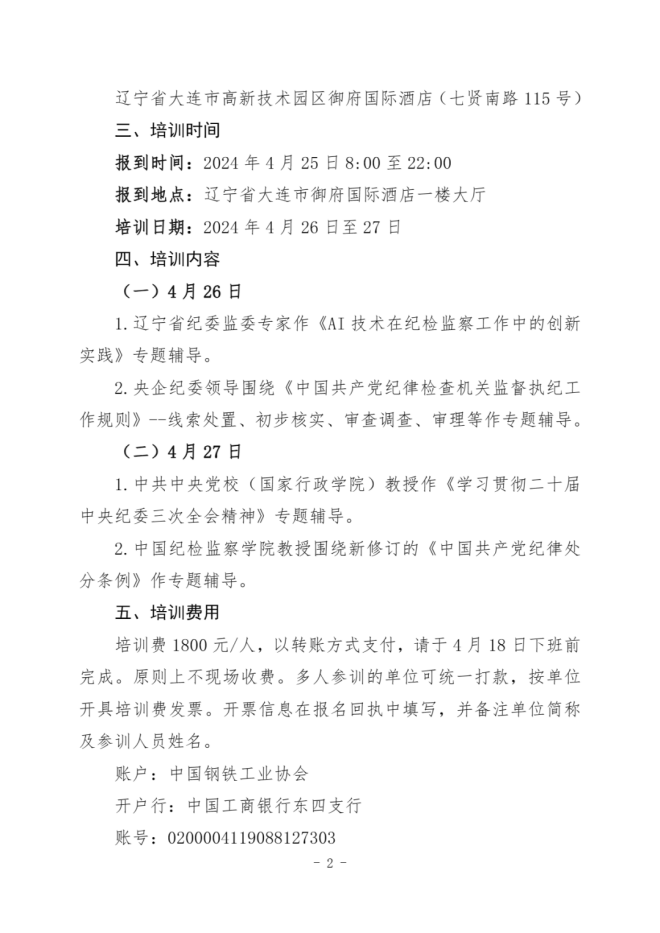關於舉辦鋼鐵行業紀檢監察幹部培訓班的通知