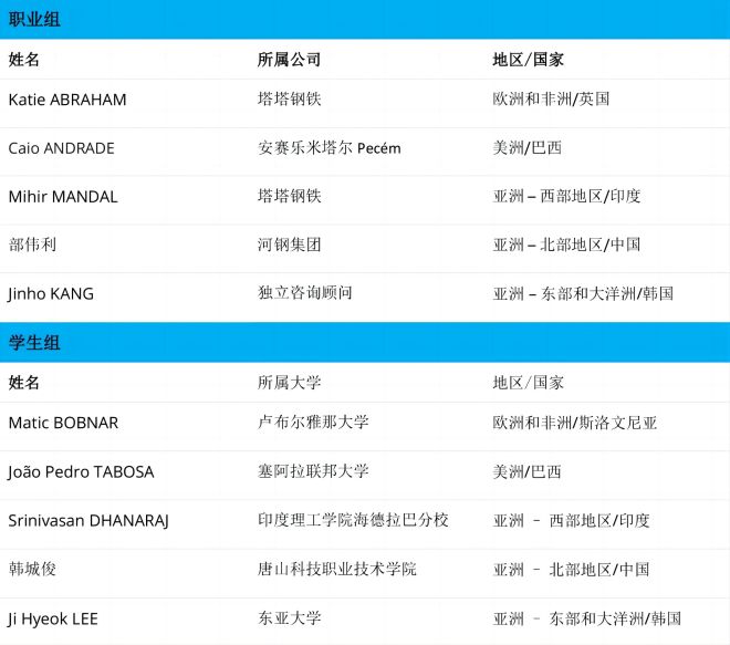 世界鋼鐵協會今天公布了第18屆模擬煉鋼挑戰賽世界總決賽冠軍名單。來自中國河鋼集團的部偉利獲得職業組冠軍,來自印度理工學院海德拉巴分校的Srinivasan DHANARAJ獲得學生組冠軍。