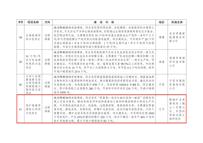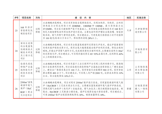 鋼鐵行業多個項目入選《綠色低碳先進技術示範項目清單(第一批)》