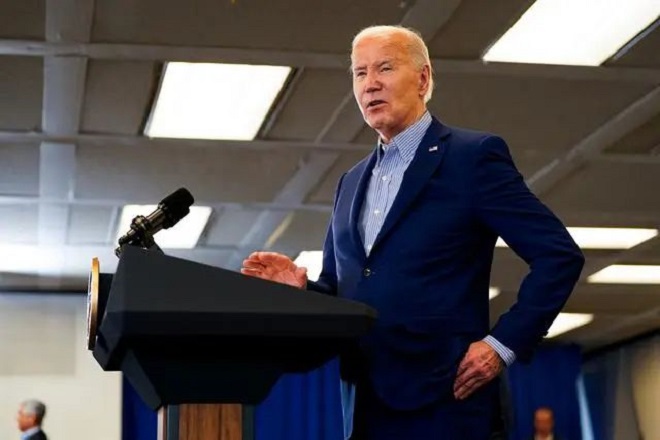 4月17日,美國總統拜登在美國鋼鐵工人聯合會位於匹茲堡的總部發表講話。