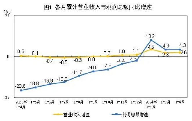 1—4月份,全國規模以上工業企業實現利潤總額20946.9億元,同比增長4.3%。