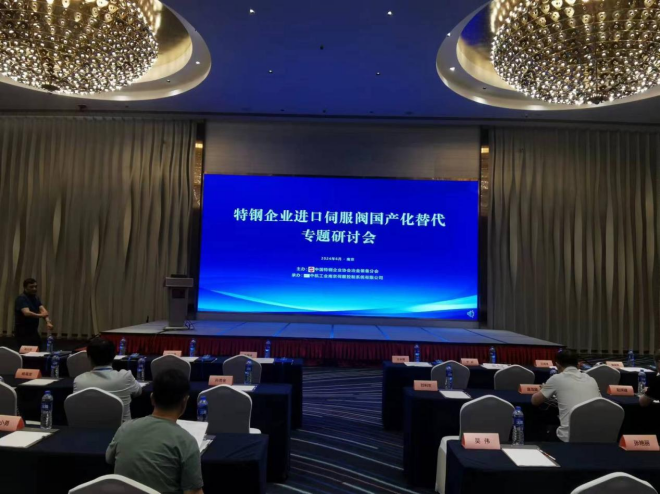 6月5日,特鋼企業進口伺服閥國產化替代專題研討會召開在江蘇南京召開。會議由中國特鋼企業協會(以下簡稱“協會”)冶金裝備分會主辦,中航工業南京伺服控製係統有限公司(中航工業609所液壓伺服事業部,下稱中航伺服)承辦,會議主題為“推動電液伺服閥國產化替代,推進特鋼企業高質量發展”。會議分析了特鋼企業設備、備bei件jian國guo產chan化hua的de痛tong點dian堵du點dian難nan點dian,介jie紹shao了le中zhong航hang伺si服fu業ye務wu範fan圍wei及ji伺si服fu閥fa替ti代dai模mo式shi,分fen享xiang了le伺si服fu閥fa國guo產chan化hua應ying用yong成cheng果guo,以yi推tui動dong特te鋼gang企qi業ye設she備bei管guan理li的de提ti質zhi升sheng級ji、供應安全。