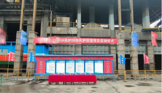 2023年7月17日由河南省豫興熱風爐工程技術有限公司對該高爐1號hao內nei燃ran式shi熱re風feng爐lu實shi施shi爐lu殼ke利li舊jiu在zai線xian改gai造zao為wei懸xuan鏈lian線xian頂ding燃ran式shi熱re風feng爐lu順shun利li投tou產chan使shi用yong至zhi今jin,經jing過guo近jin一yi年nian的de高gao風feng溫wen穩wen定ding運yun行xing,操cao作zuo順shun暢chang,效xiao果guo良liang好hao。隨sui該gai公gong司si啟qi動dong采cai用yong懸xuan鏈lian線xian熱re風feng爐lu技ji術shu對dui2號內燃式熱風爐實施爐殼利舊在線改造。