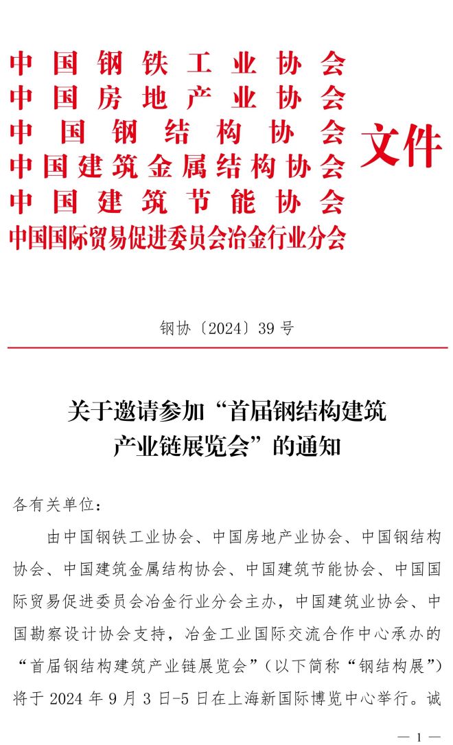 關於邀請參加“首屆鋼結構建築產業鏈展覽會”的通知
