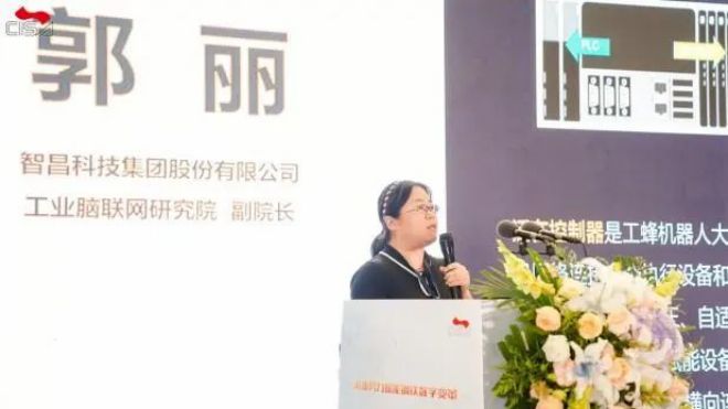 智昌科技集團股份有限公司工業腦聯網研究院副院長郭麗做《基於AI技術的工業機器人集群應用》主題演講