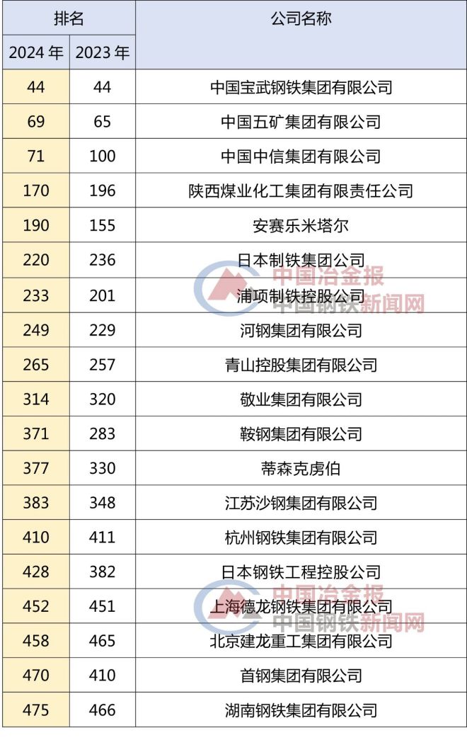 19家涉鋼企業上榜2024年財富世界500強