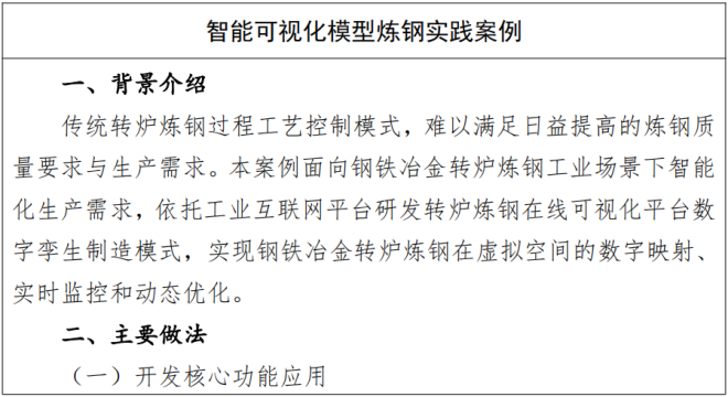 打造智能冶煉工廠。鼓勵行業企業對冶煉設備進行數字 化、智能化改造,提高產線自動化率。加快開展成套國產化 智能裝備應用,實現工廠數字化、網絡化、少人化。綜合利用 5G、物聯網等新一代信息技術,構建泛在感知互聯的工 廠運行環境,提升鋼鐵行業燒結、煉鐵、煉鋼、軋鋼,以及有色行業火法熔煉、餘熱鍋爐、管道溶出、萃取分離等重點工序智能化控製水平。
