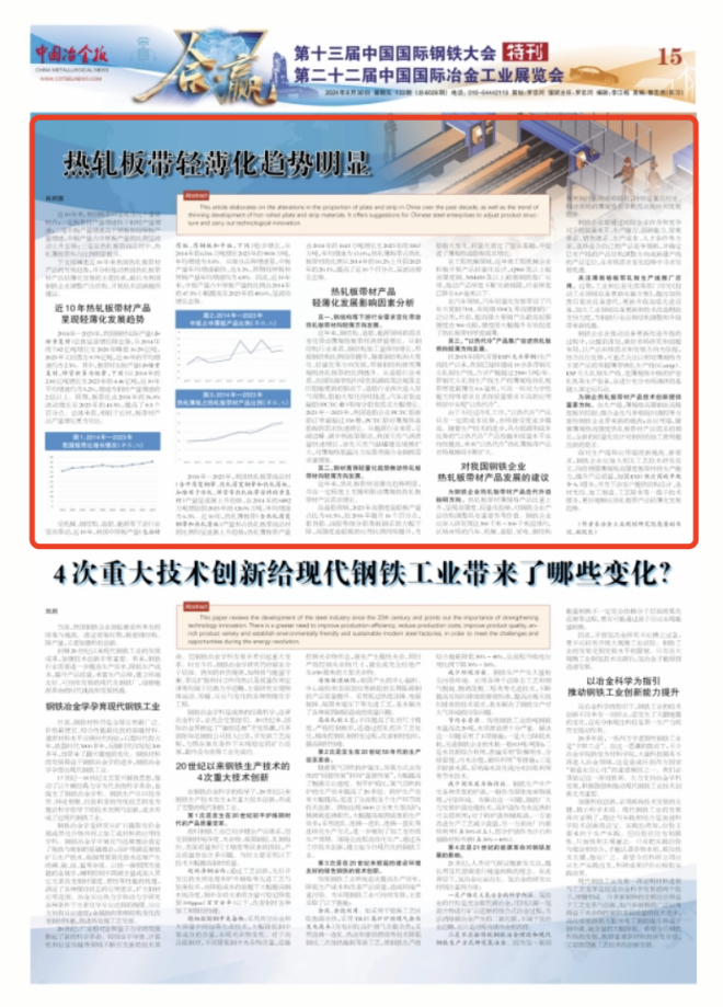 為鋼企熱軋板帶材產品技術創新提供重要方向。在生產端,薄規格高強鋼在高精度板形控製、微合金化與多相組織調控等方麵給鋼鐵企業帶來新的挑戰;在應用端,隨著薄規格高強度熱軋板帶材產品需求的增長,全新的輕量化設計對鋼材的加工使用提出新的要求。