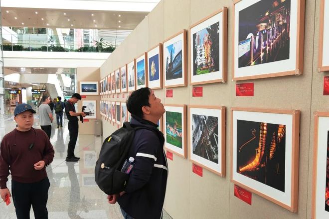 與會嘉賓及旅客等參觀中國冶金報社入選本次影展的照片