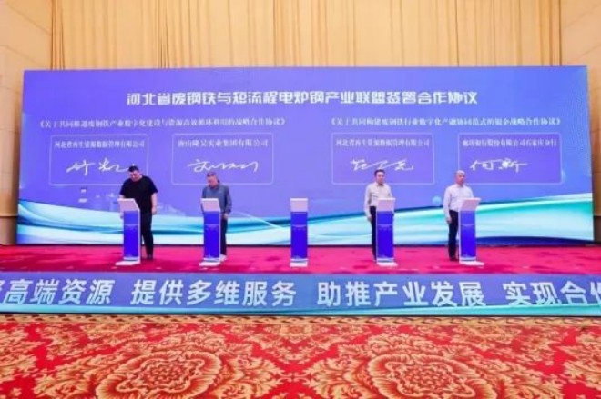《關於共同推進廢鋼鐵產業數字化建設與資源高效循環利用的戰略合作協議》《關於共同構建廢鋼鐵行業數字化產融協同範式的銀企戰略合作協議》簽署。