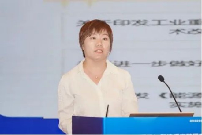 冶金工業信息標準研究院谘詢部部長楊梅梅作《中國鋼鐵品牌競爭力與綠色低碳標準化》報告。