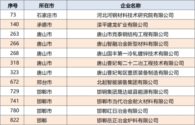 《通知》公布了874家企業為2024年第三批河北省創新型中小企業,其中涉鋼企業12家。