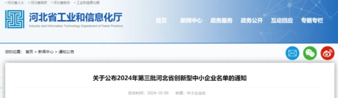 近日,河北省工信廳發布了《關於公布2024年第三批河北省創新型中小企業名單的通知》(以下簡稱《通知》)。
