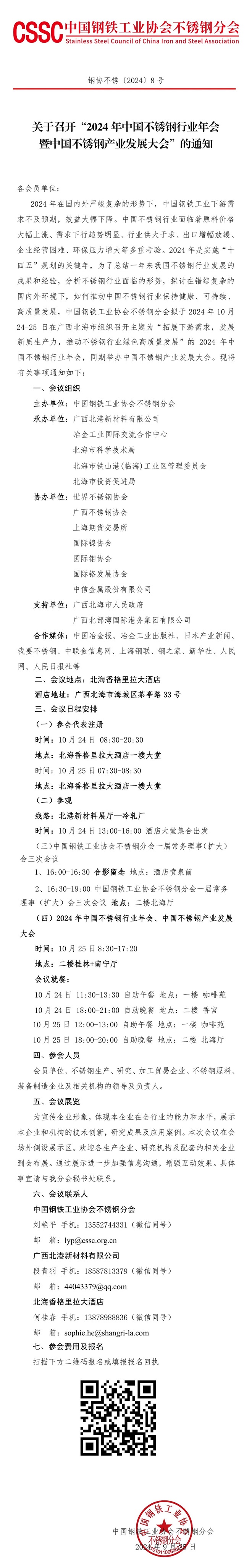 關於召開“2024年中國不鏽鋼行業年會暨中國不鏽鋼產業發展大會”的通知