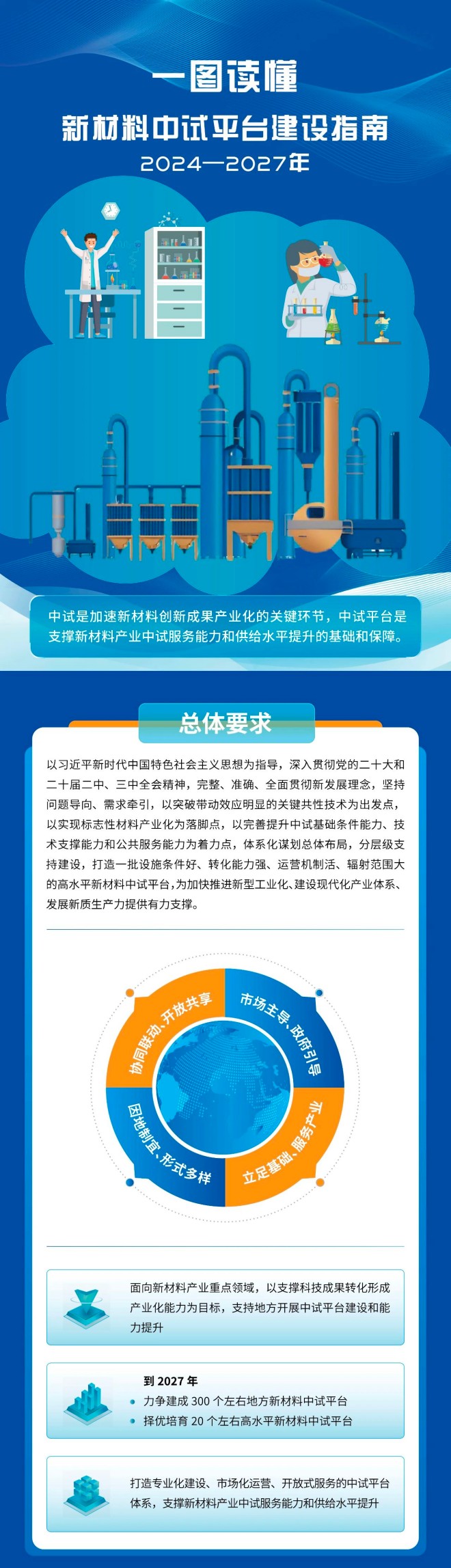 10月11日,從工業和信息化部官網獲悉,近日,工業和信息化部、國家發展改革委聯合印發《新材料中試平台建設指南(2024—2027年)》,提出到2027年,我國將圍繞石化化工、鋼鐵、有色金屬、無機非金屬、前沿材料5大領域,建成300個左右地方新材料的測試平台,也就是業內俗稱的中試平台,再從中重點培育20個左右的高水平平台。