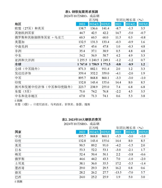 世界鋼鐵協會發布2024年10月版短期鋼鐵需求預測報告