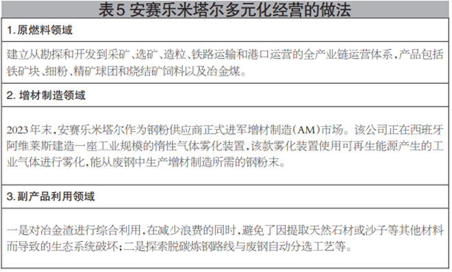 從表4可以看出,以安賽樂米塔爾為代表的歐洲鋼鐵企業在轉型升級過程中,一是聚焦新興市場及熱點領域(如增材製造、軟磁材料等),二是重點發展礦石采選與資源綜合回收業務,三是在建築、汽車用鋼等方向持續創新。