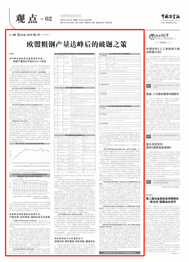 【破局“內卷” 共築行業新生態】歐盟粗鋼產量達峰後的破題之策