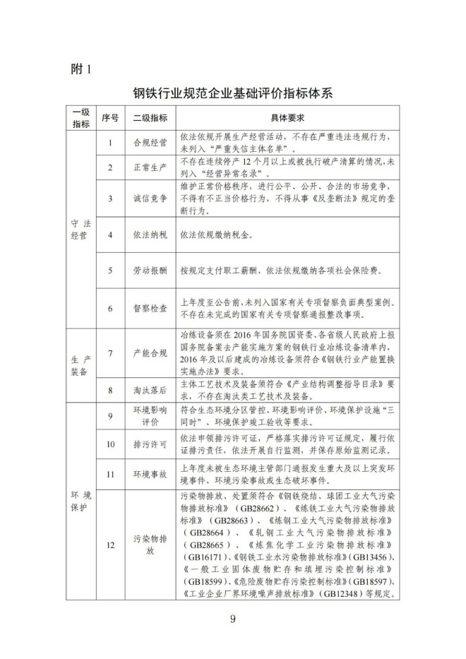 為落實全國新型工業化推進大會部署,加快推動鋼鐵行業轉型升級,依據國家有關法律法規和產業政策,我們對《鋼鐵行業規範條件(2015年修訂)》和《鋼鐵行業規範企業管理辦法》(工業和信息化部2015年第35號公告)進行了修訂,研究形成了《鋼鐵行業規範條件(2024年修訂)(征求意見稿)》(見附件),現向社會公開征求意見。如有修改意見或建議,請於11月14日前書麵反饋我司。