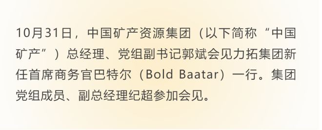 中國礦產總經理郭斌會見力拓集團首席商務官巴特爾