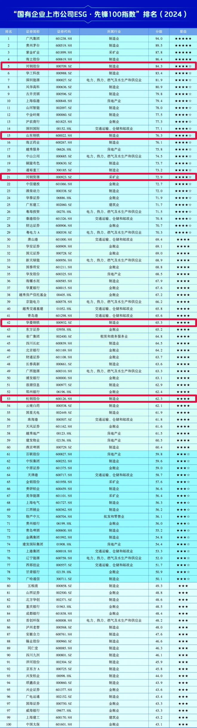 表7 國有企業上市公司ESG·先鋒100指數(2024)