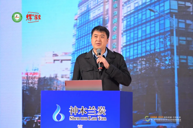 中國國際工程谘詢公司能源業務部煤炭清潔高效利用處處長劉光啟為與會代表做題為《煤炭清潔高效利用“十五五”及蘭炭(提質煤)產業發展》的報告。