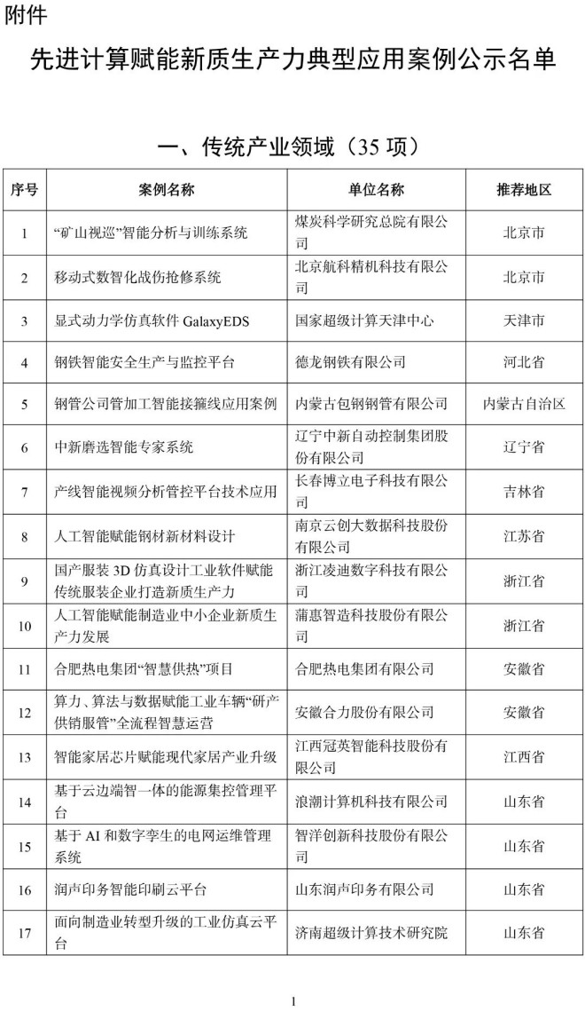 11月25日,中華人民共和國工業和信息化部網站發布了《先進計算賦能新質生產力典型應用案例公示》(以下簡稱《公示》)。