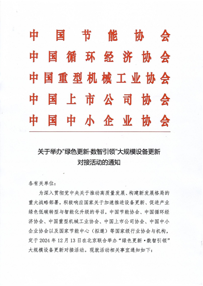 關於舉辦“綠色更新•數智引領”大規模設備更新對接活動的通知