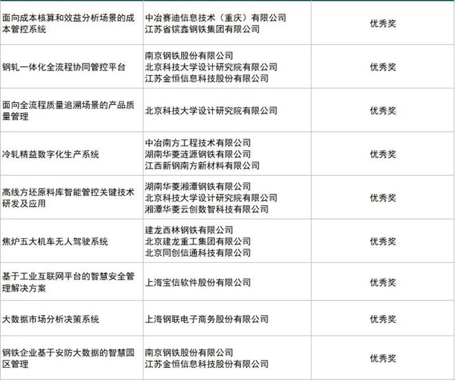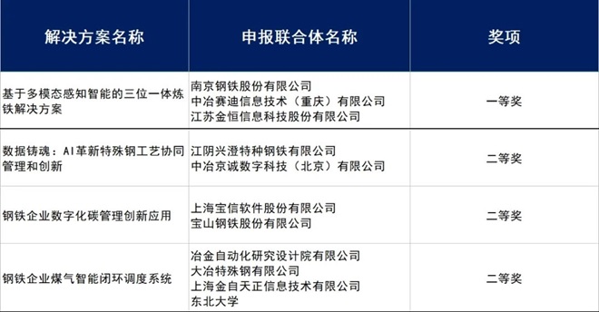 第四屆智能製造創新大賽-原材料(鋼鐵)賽道決賽獲獎名單