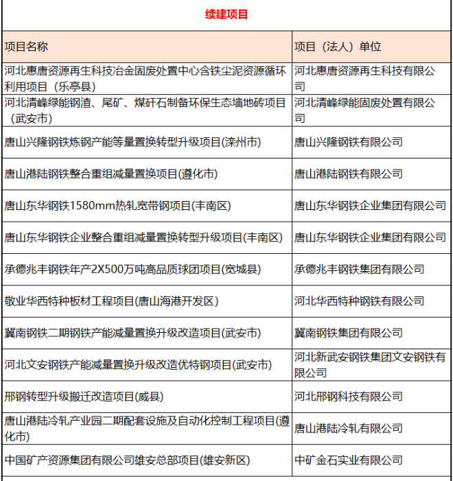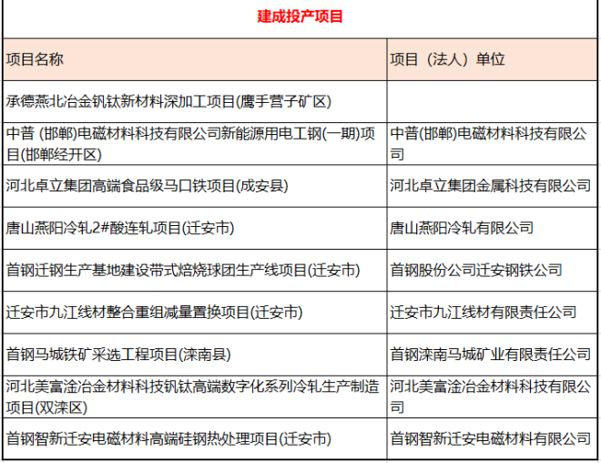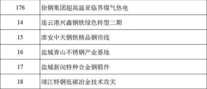 其中鋼鐵行業相關項目如下: