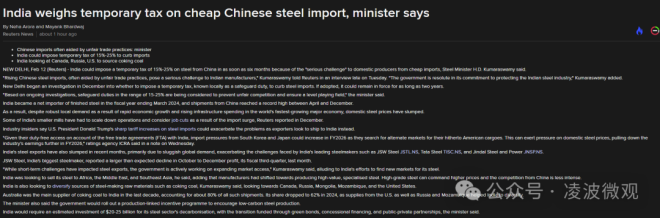 印度擬對進口自中國的鋼鐵產品征收15%-25%臨時關稅