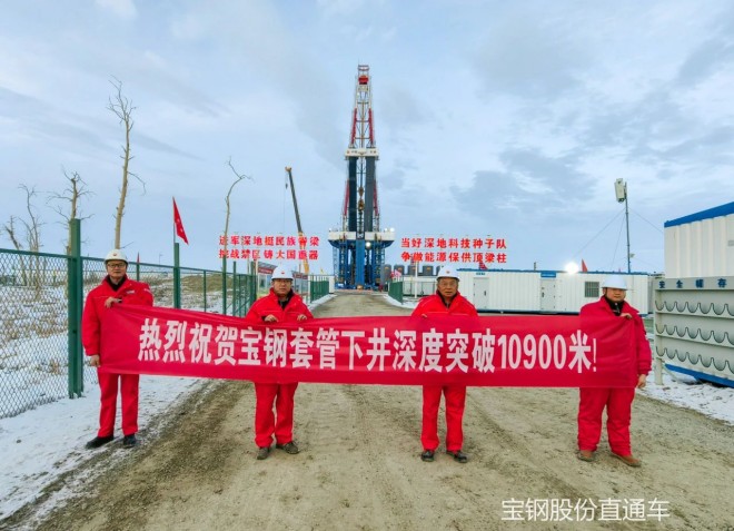近日,塔裏木盆地傳來令人振奮的消息。寶鋼股份自主研發的BG155V高強高韌高氣密性套管,作為完井管柱,在該盆地某特深複雜探井中成功入井並到達指定位置。此探井完鑽垂直井深超過10900米,是目前世界第二、亞洲第一深直井,這一成果標誌著寶鋼石油套管達到世界領先水平,也創造了國產套管下井深度的新紀錄。