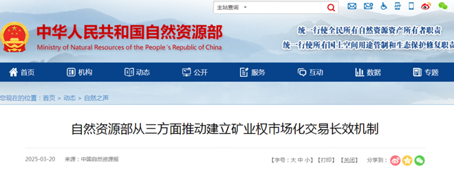 自然資源部從三方麵推動建立礦業權市場化交易長效機製