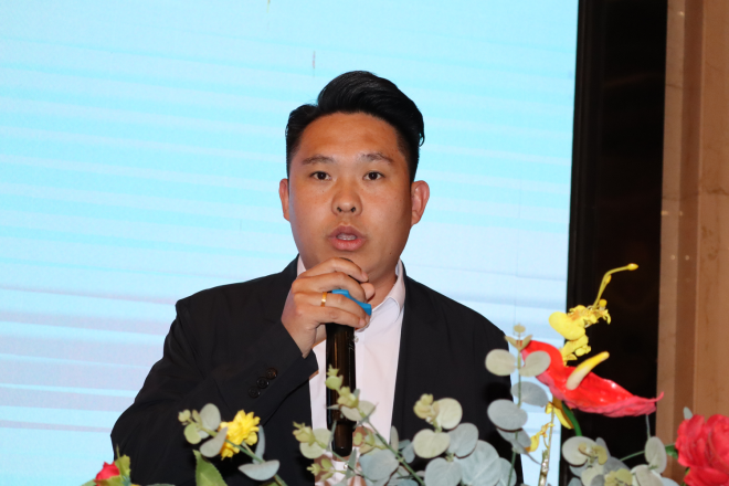 河南天通礦業集團有限公司副總經理寧誠通過播放公司視頻資料,全方位展示企業風采與實力。